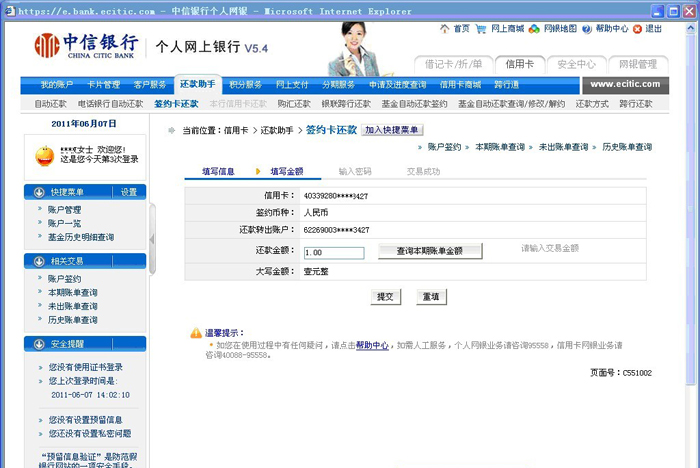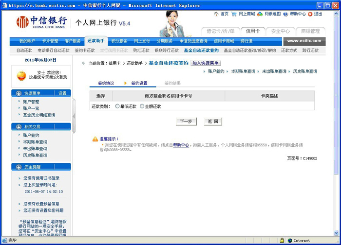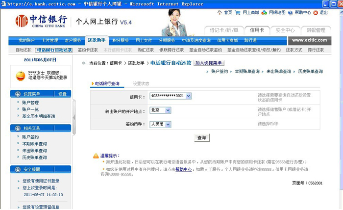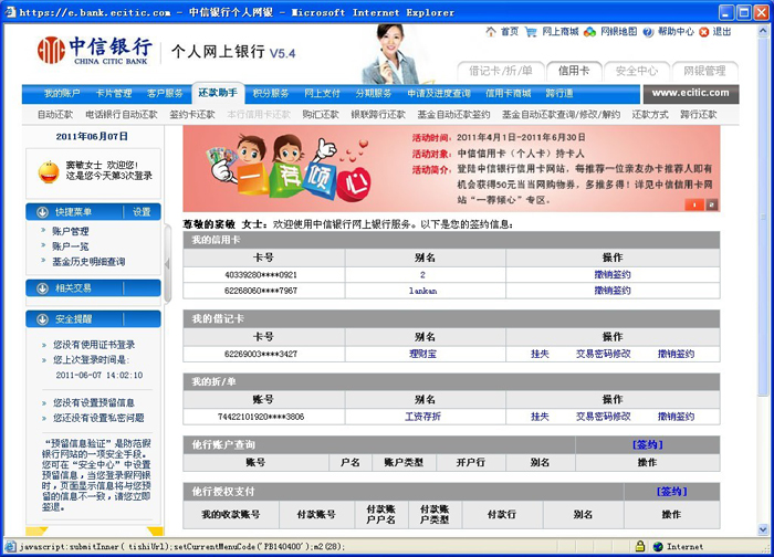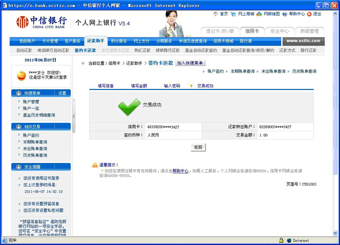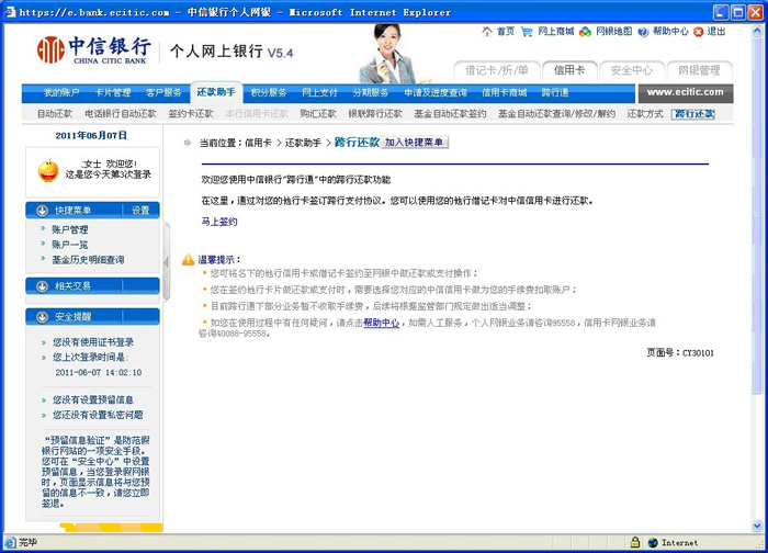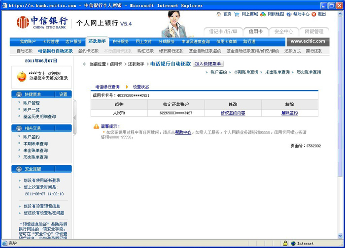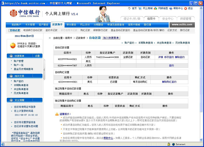 | 网上支付设置 | 您可开通、取消本人签约账户的网上支付功能,还可调整已开通网上支付账户的支付限额。 |