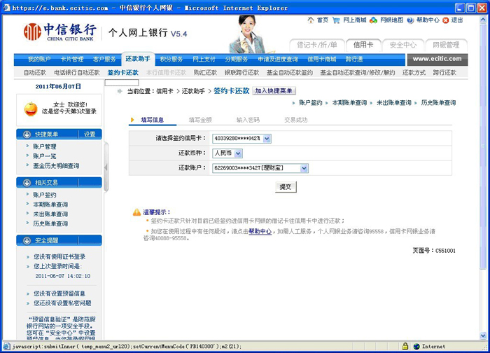 7. 如果您想进行本人签约账户间转账,请使用我的签约账户间转账功能。