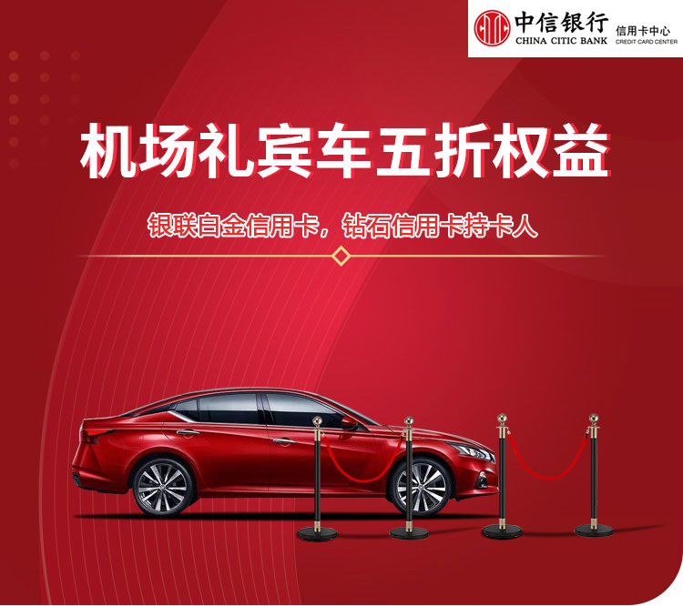 银联白金信用卡、钻石信用卡客户在境内50余城市以优惠价享受机场礼宾车五折优惠权益,即产品单次原价198元/次,五折优惠价为99元/次。