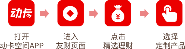 答:“动卡空间-友财-精选理财-我的持有”,选择要赎回的产品,点击赎回。