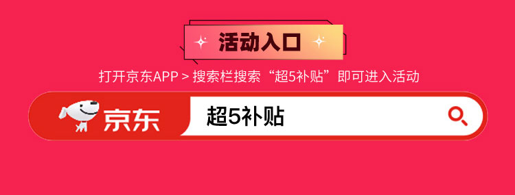 2、活动路径:打开京东APP-搜索【超5补贴】或微信关注【JDJR卡服务官】公众号-回复【超5补贴】关键词-点击链接进入活动页面。