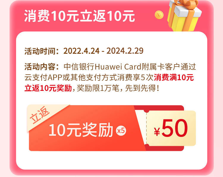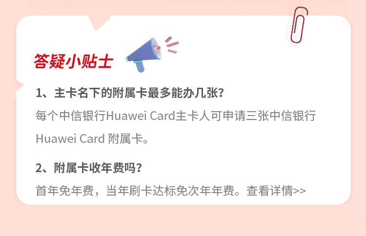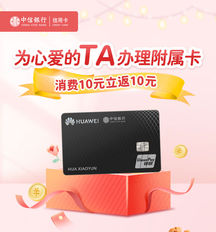 *中信银行Huawei Card是中信银行信用卡中心、华为软件技术有限公司联合发行的联名信用卡,简称“中信华为卡”。