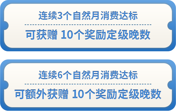 3.活动内容:(1)新办卡客户自卡片批核日的次月起(2)存量持卡人自活动起始月起,每自然月使用该卡片计积分消费人民币8,000元或以上,连续3个自然月消费达标,获得 10个奖励定级晚数;连续6个自然月消费达标,额外获得 10个奖励定级晚数。活动期间,每位用户最高可获得20个奖励定级房晚。奖励定级晚数在持卡人达成连续3个月和6个月连续消费达标后的次月月底前,导入至持卡人联名卡对应的洲际优悦会会员账户。用户参与并获得本活动的奖品与奖励的前提是用户应当保持其联名卡以及与联名卡关联的洲际优悦会会员账户均有效且状态正常。