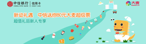 2016年8月19日至2016年12月31日,通过本页面申办中信信用卡的新客户,且在核卡60天内完成首刷,可获赠80元大麦超级票。