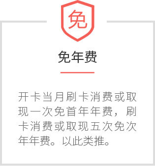 卡片批核30天内刷卡或提现一次,金卡即可免首年年费;一年内刷卡或提现累计5次,金卡即可豁免次年年费,以此类推。