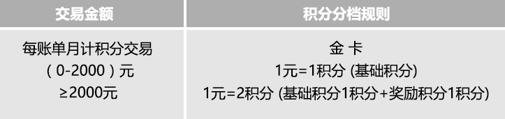 网络交易计积分(部分网络交易不计积分,详见中信信用卡官网《网络类联名卡零星不累积积分网络交易商户列表》) 积分分档规则:
