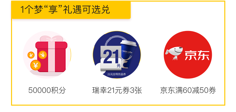 - 新客户卡片批核60天内,3笔99元以上支付宝/财付通/京东/美团/小米/翼支付交易,获得1个梦“享”礼遇;