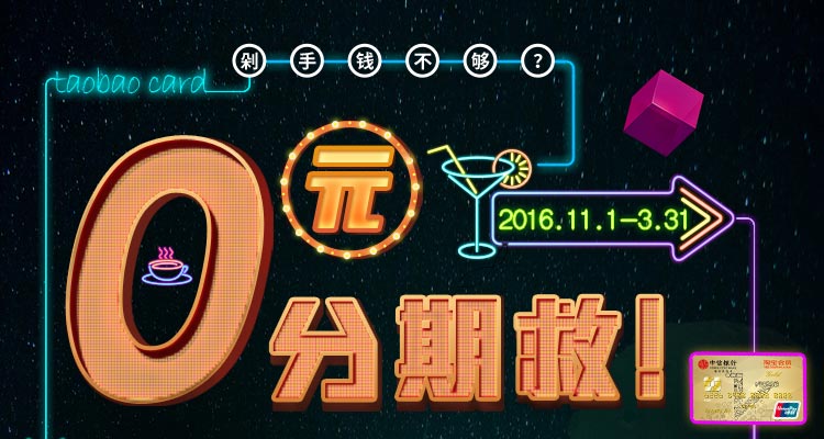 网络渠道申请淘宝V卡的客户,办理12期中信新快线(含续金宝) 分期,有机会获赠0元分期资格,可减免12期手续费。活动为期5个月,每月限量200名,单客户手续费最高可减免1200元。