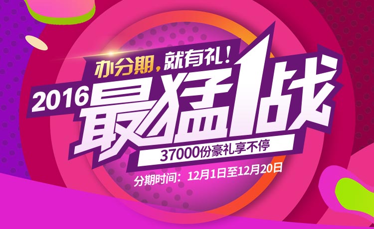 4办理分期的时间为12月1日-2016年12月20日,相应兑换礼品的时间为12月6日00:00-2016年12月25日23:59,如:12月1号成功办理的客户6号即可开始兑换礼品,2号办理的客户7号即可开始兑换礼品,以此类推。