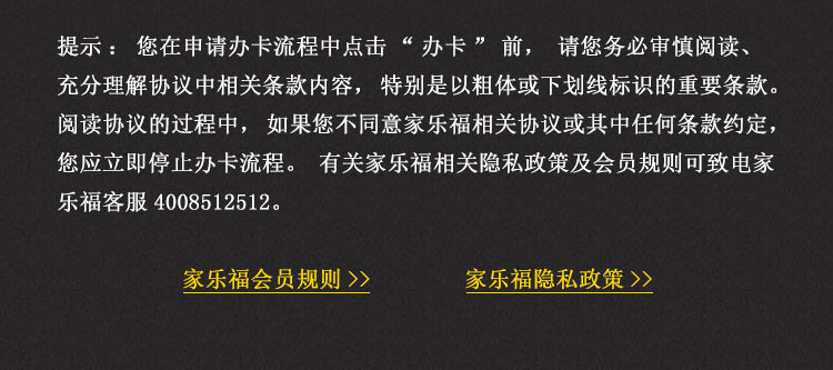 6、凡在家乐福店内购买购物卡或礼品卡的金额均不计入交易金额累计。