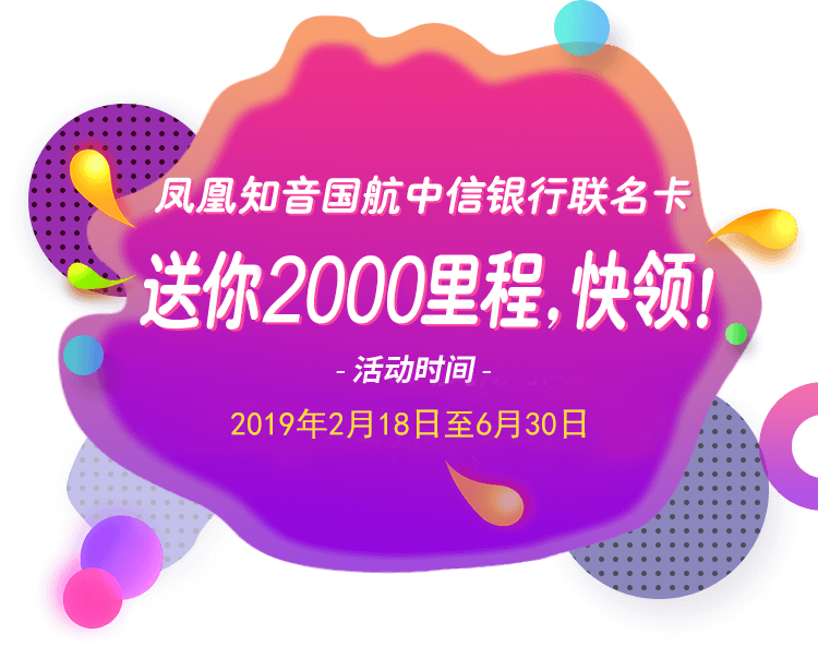 活动期间通过国航的APP、官网、短信渠道成功申办凤凰知音国航中信银行万事达联名卡,在批核卡后60天内(含)完成首刷单笔满99元,即可获赠2000里程。