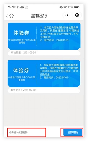 5、输入优惠券→立即兑换