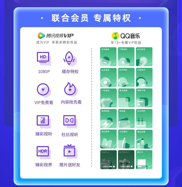 (一)活动期间,用户通过本活动页面购买指定双会员月卡(腾讯视频VIP会员月卡x QQ音乐绿钻会员月卡),可享10.9元购1个双会员月卡的优惠,优惠限量800个/天,兑完即止。