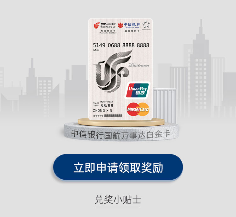 中信银行国航万事达白金卡新客户(首次办理该白金卡即为新客户,此前有其他中信信用卡不受影响)