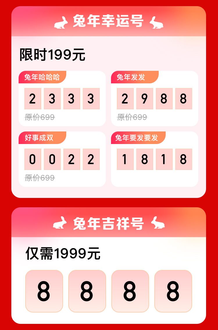限时特价靓号限时特惠,先到先得,抢完为止。