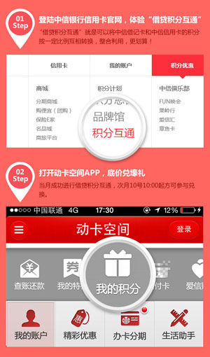 6月~8月,成功进行借贷积分互通,即可获得1次抢兑机会,在次月10日10:00~24:00通过动卡空间APP以巨惠积分值抢兑精选大牌壕礼!活动细则>>